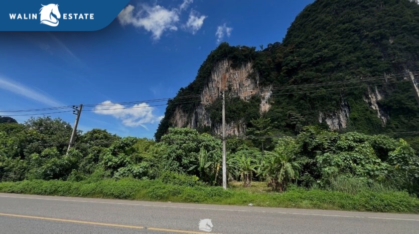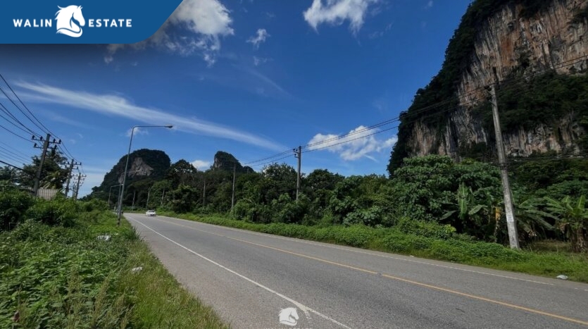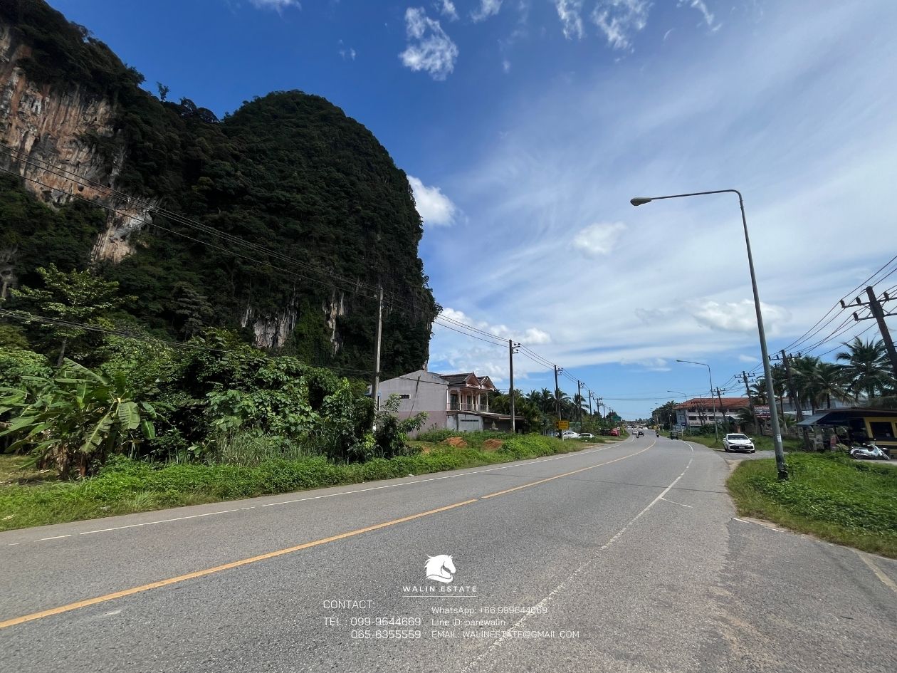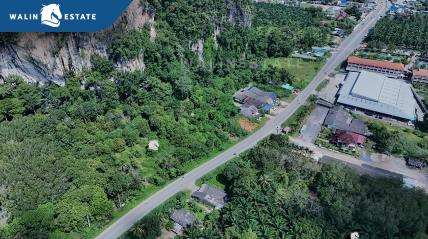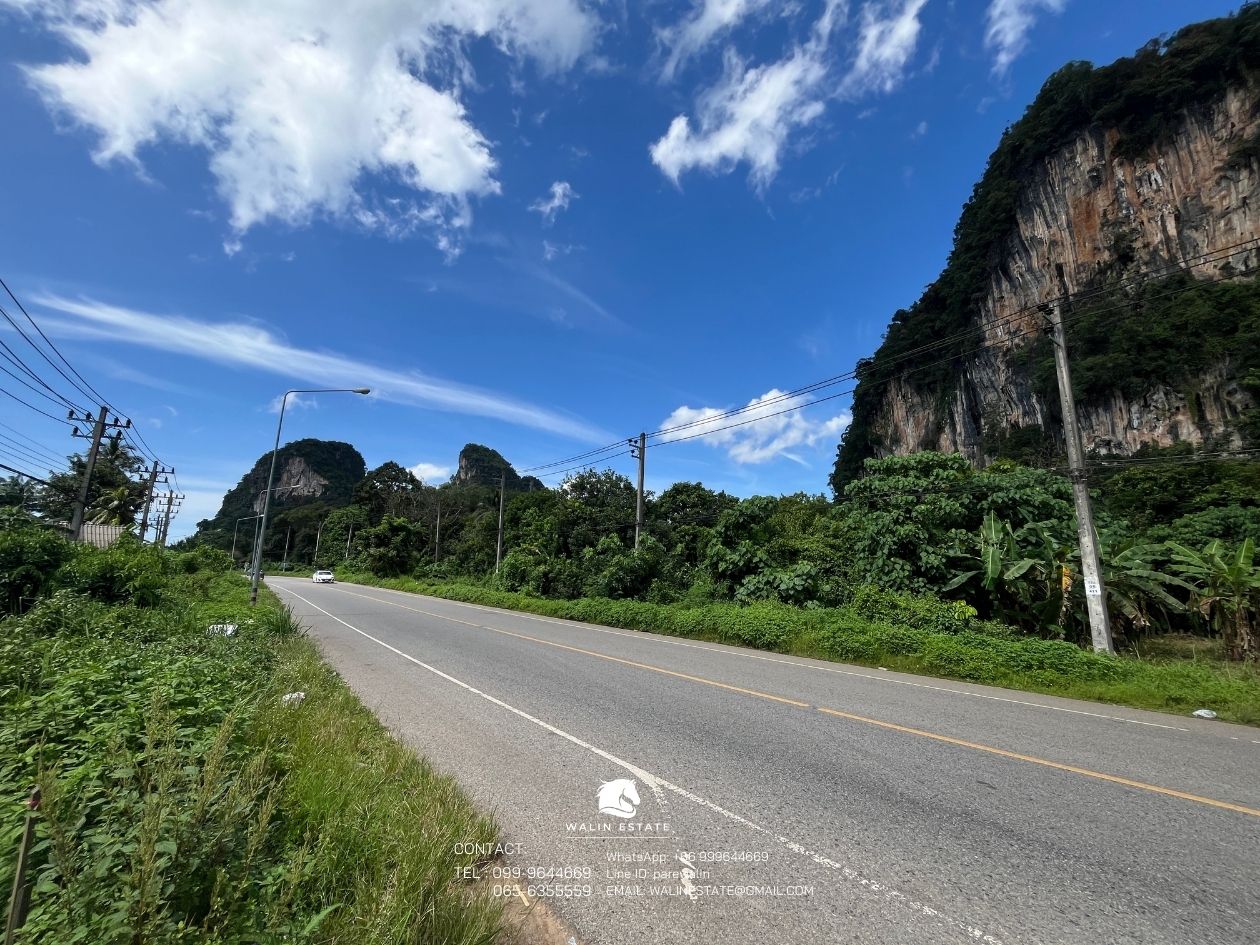 The front of the land faces the road, and the back borders a mountain. Located along the Khlong Muang – Krabi Town road, just 10 minutes from Ao Nang Beach.