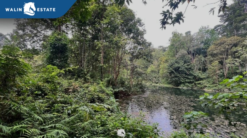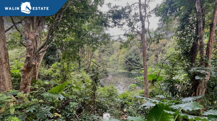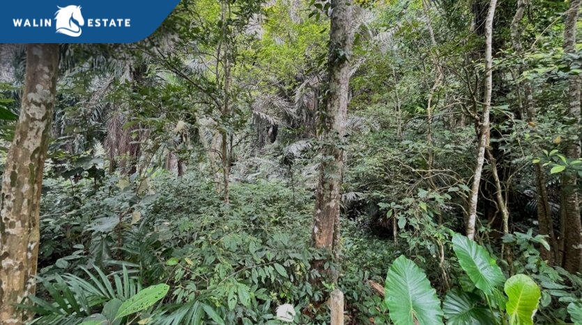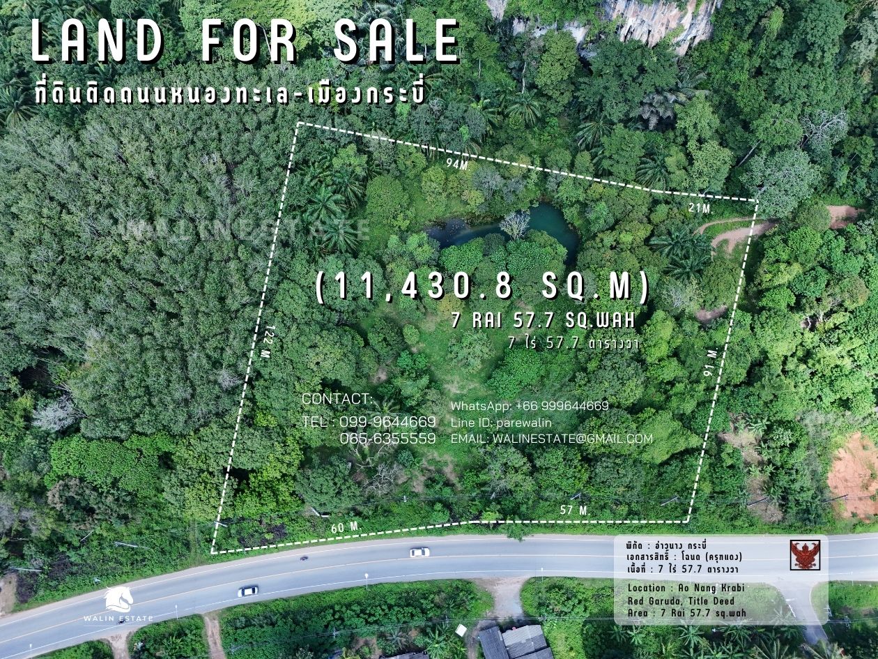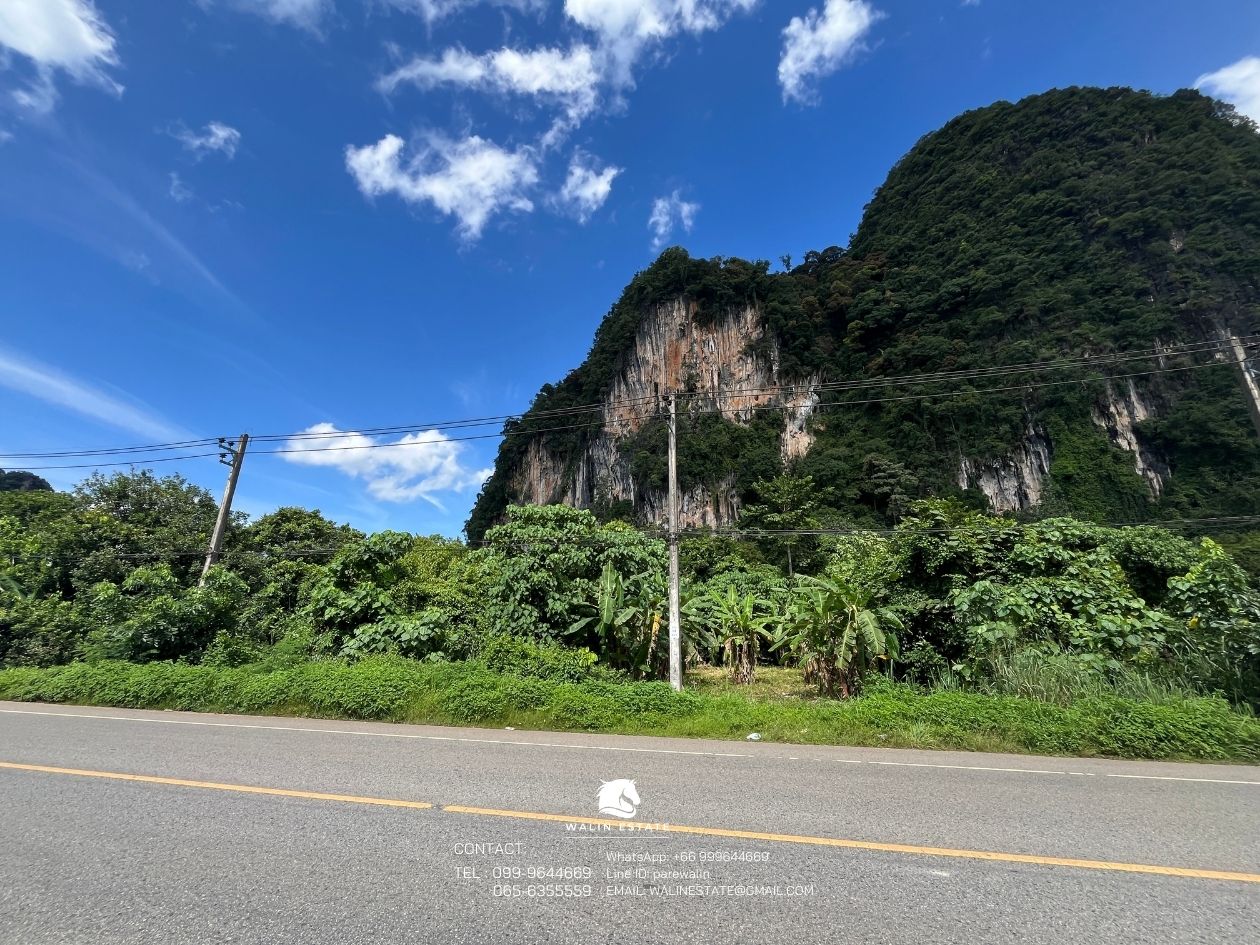 The front of the land faces the road, and the back borders a mountain. Located along the Khlong Muang – Krabi Town road, just 10 minutes from Ao Nang Beach.