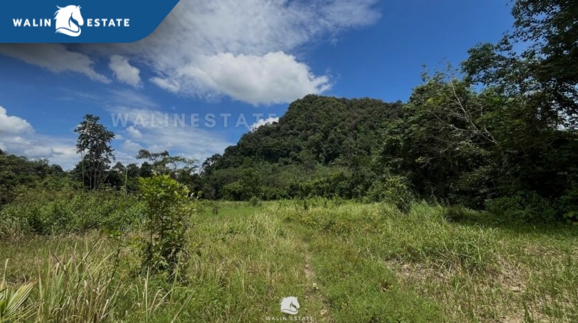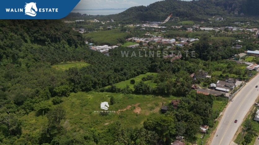 หน้าติดถนนหลัก ด้านหลังวิวภูเขา ที่ดินเหมาะทำธุรกิจ