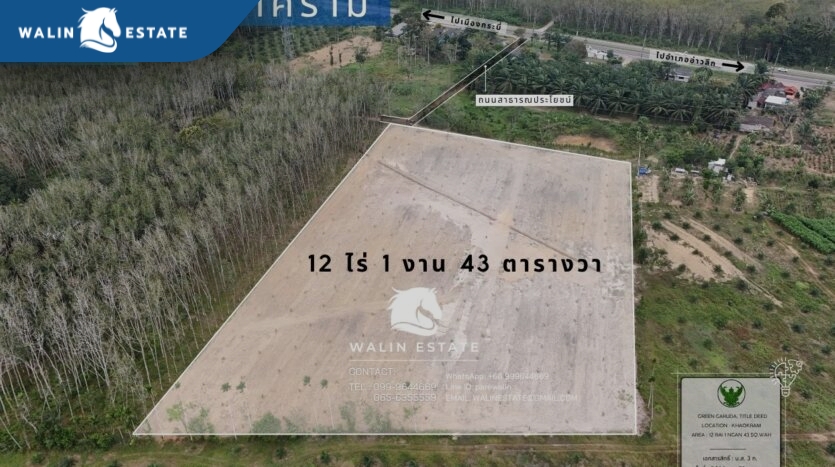 เนื้อที่ 12 ไร่ 1 งาน 43 ตารางวา