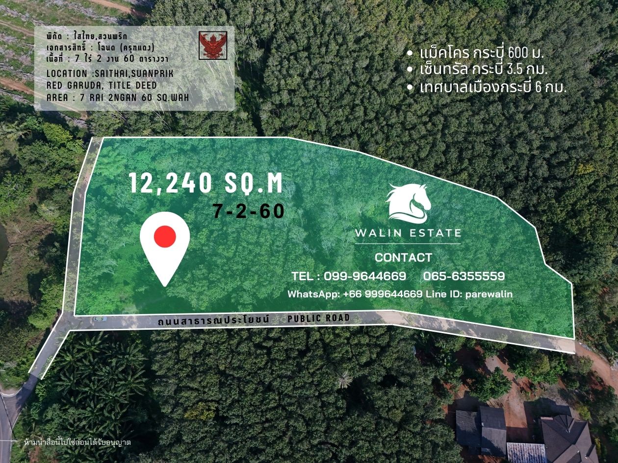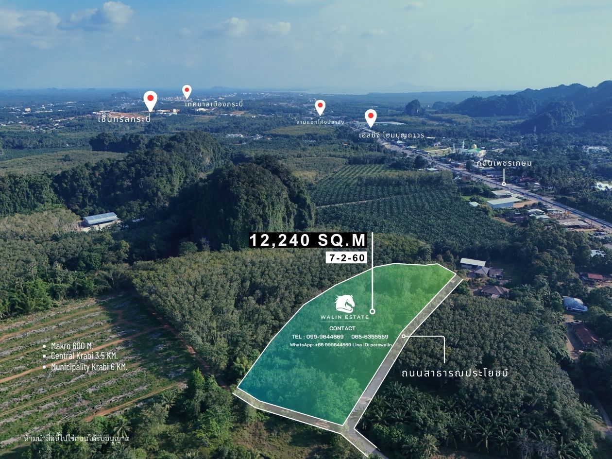 Entrance via Makro Krabi, surrounded by nature, close to amenities, and easy access. Suitable for building a home or developing a housing project.