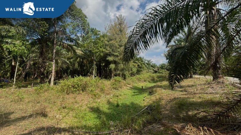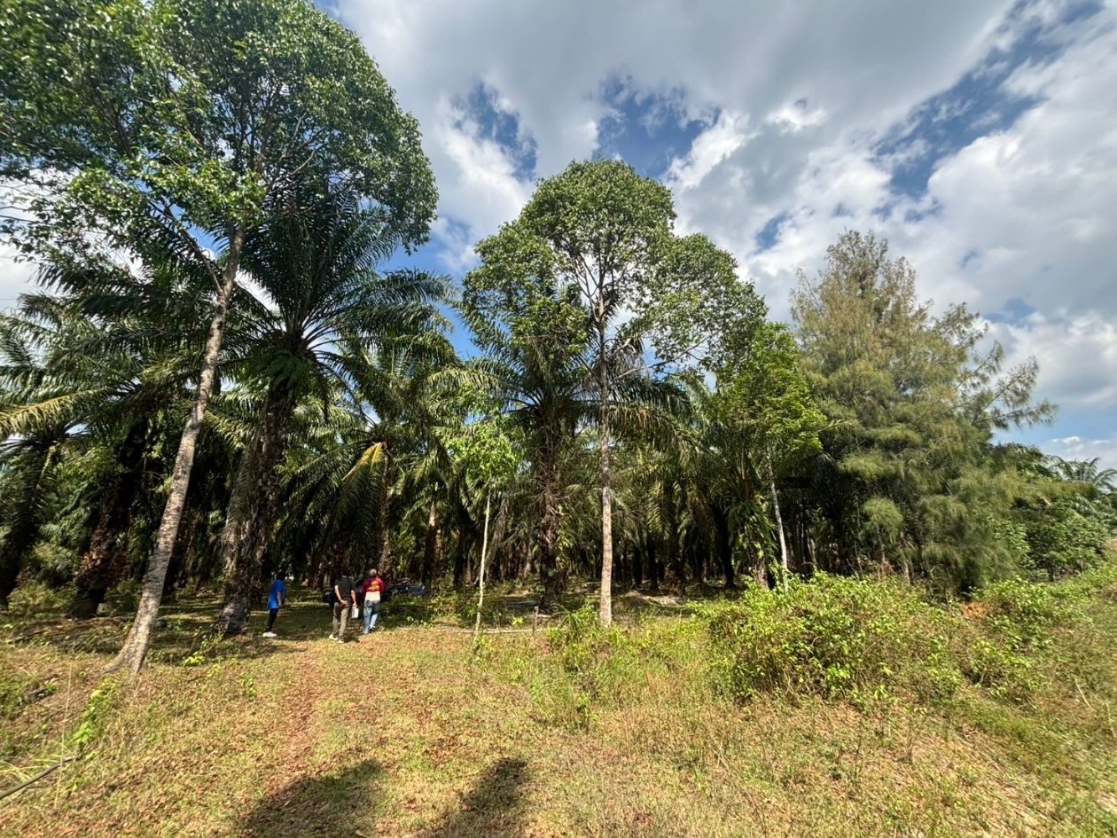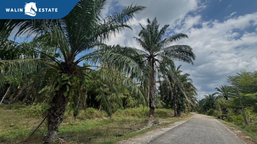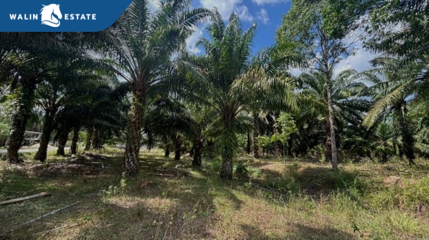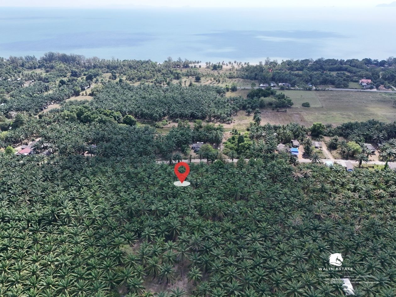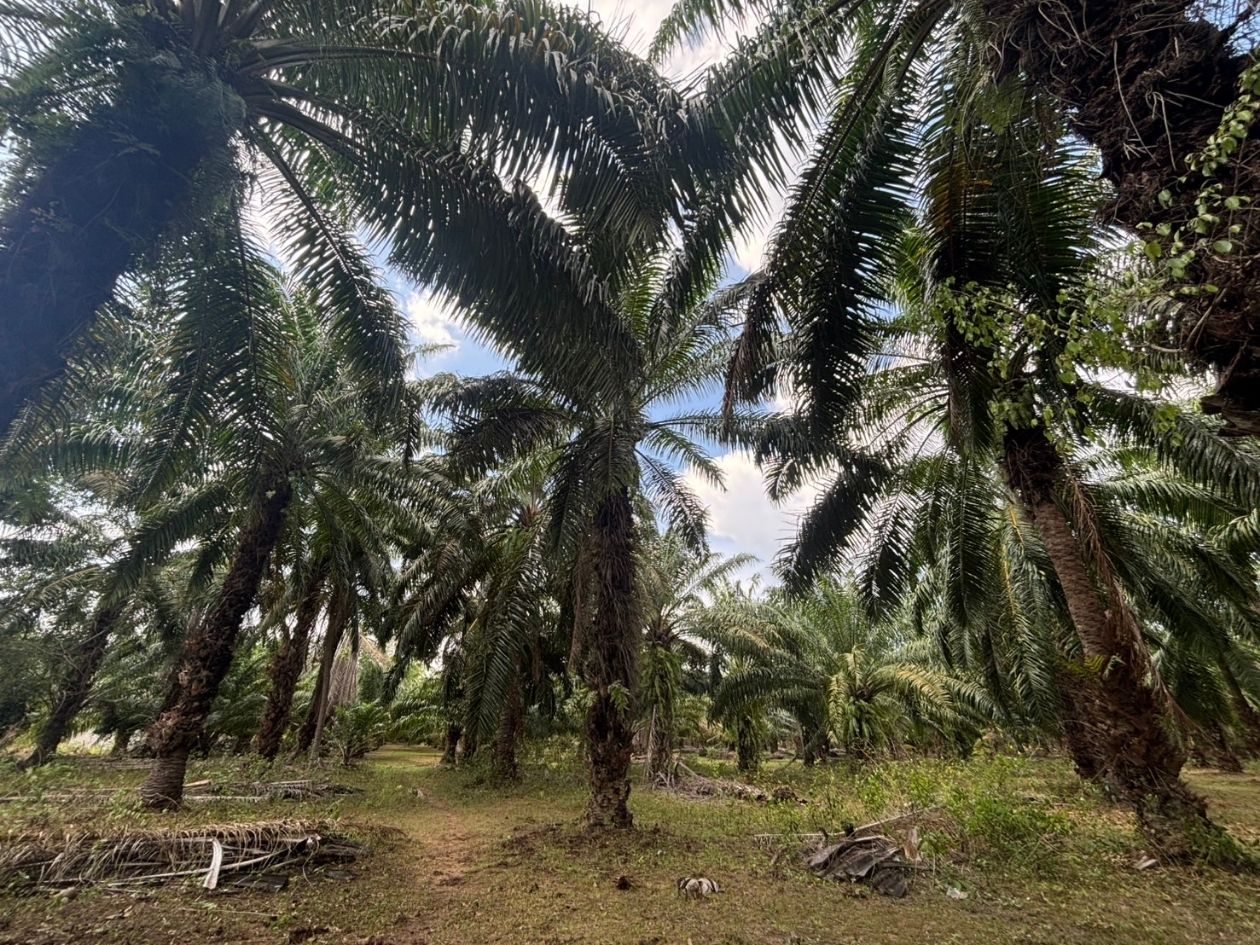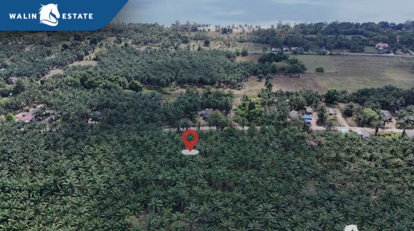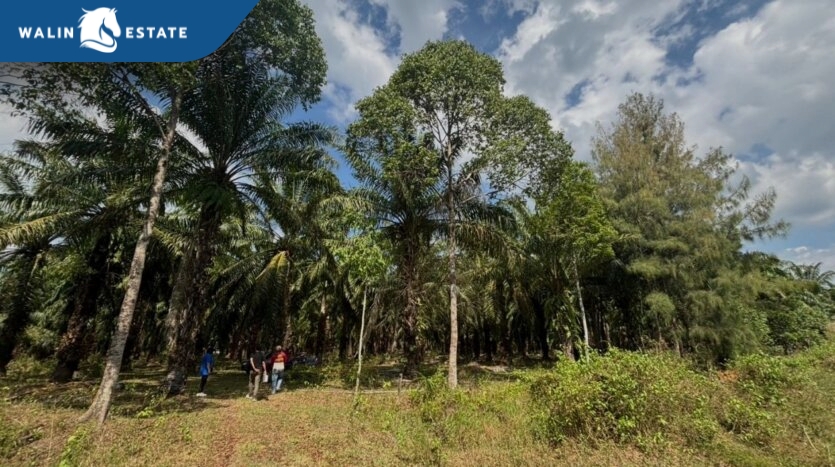 พื้นที่เป็นสวนปาล์มรูปแปลงสี่เหลี่ยมใกล้ชายหาด