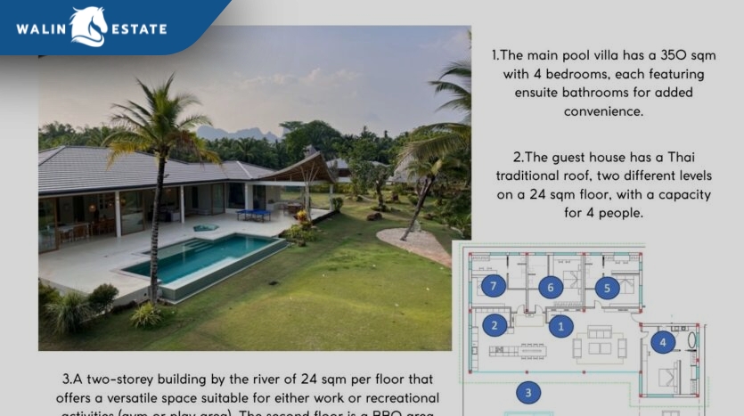 -Guest House: Traditional Thai-style two-story structure (24 sqm) accommodating up to 4 guests.