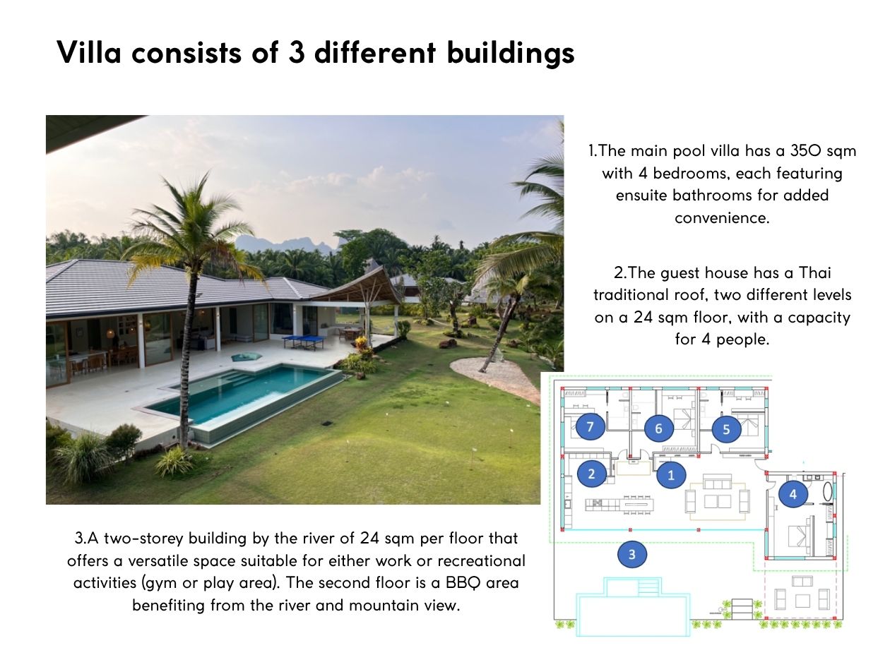 -วิลล่าพูลวิลล่าหลัก: วิลล่ากว้างขวาง 350 ตรม. มีห้องนอน 4 ห้อง แต่ละห้องมีห้องน้ำในตัวเพื่อความเป็นส่วนตัวและความสะดวกสบายที่เพิ่มมากขึ้น